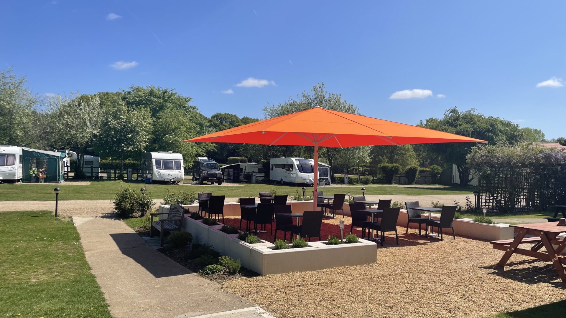 An on site bar also serves delicious take-aways (using local produce) on certain nights of the week. The well-stocked food, off-licence and camping accessory shop also serves warm croissants in the morning. The park has 4 modern washroom facilities equipped to the highest standards, featuring underfloor heating and free hot water throughout the day and a new block will be ready for the 2022 season.